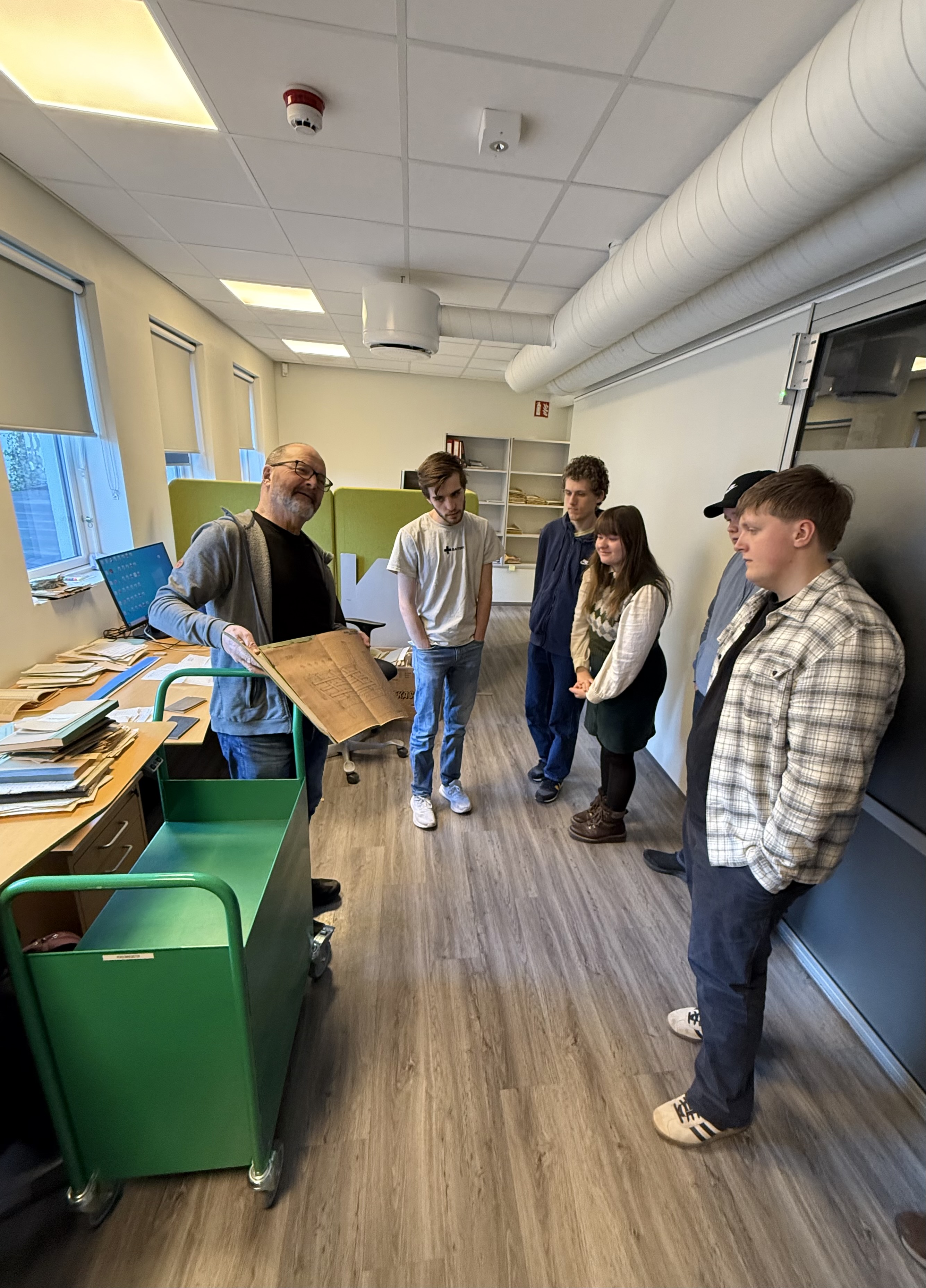 Fredag 06.02.2026 hadde vi besøk av studentar og emneansvarleg frå HI100, Innføringsemnet i historie, ved Høgskulen i Volda.