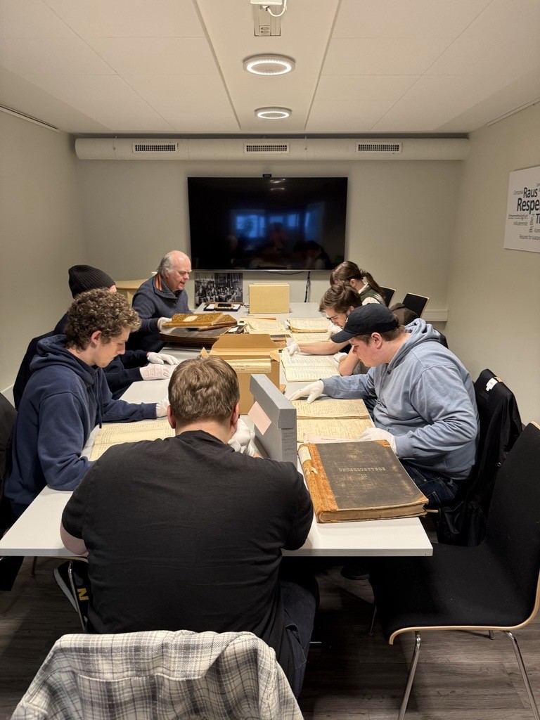 Dei fekk sjå i praksis korleis IKAMR jobbar med arkivforvaltning, og ikkje minst erfare å lese i fysiske kjelder.